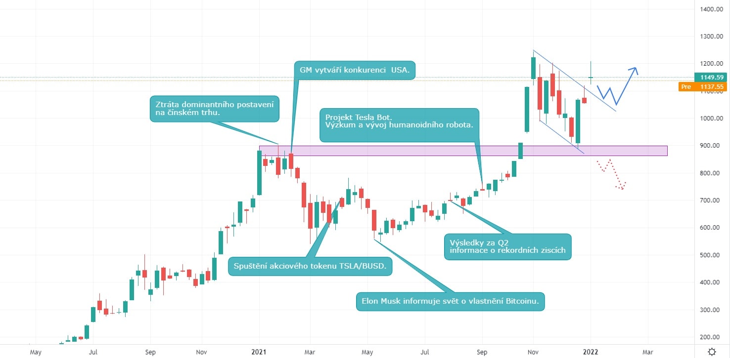 Po slabším rozjezdu na začátku roku 2021, se akcie společnosti Tesla opět objevily mezi TOP technologickými akciemi. Uplynulý rok byl pro Teslu jedním z revolučních, protože se během něj otevřely dveře nejen k budoucnosti obchodování akciových titulů, pomocí technologie blockchainu, ale také díky zahájení zajímavého projektu Tesla Bot.