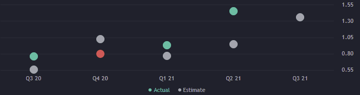 EPS za jednotlivé kvartály. Zdroj: tradingview.com