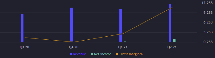 EBITDA dosáhla více jak 2 miliard USD, což je mezikvartální růst o cca 81 %. EPS je na 1,45 bodech, odhadovalo se mnohem méně, asi 0,94 bodů. Odhad na třetí kvartál je 1,35 bodů, takže se kalkuluje s horším výsledkem.