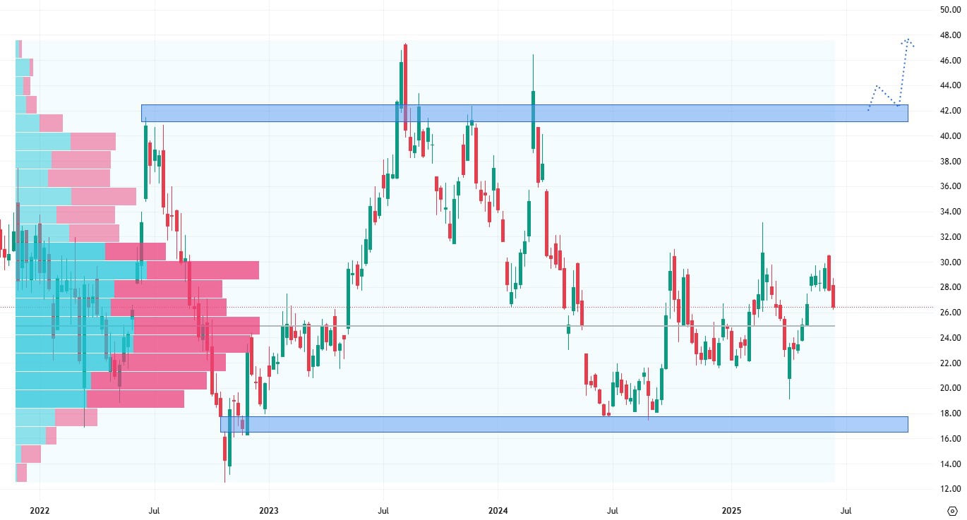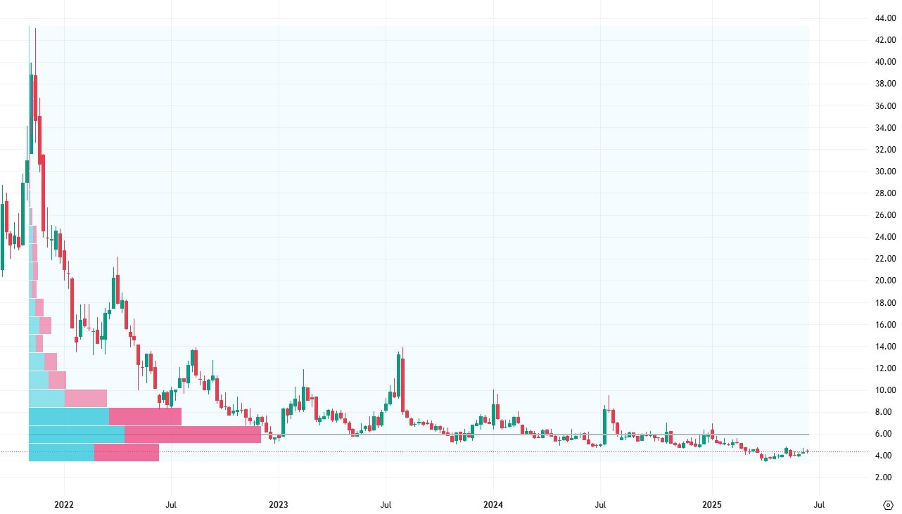 Akcie Li Auto se aktuálně pohybují vesměs do strany, s tím, že největší volume se nachází na ceně 25 USD za akcii.