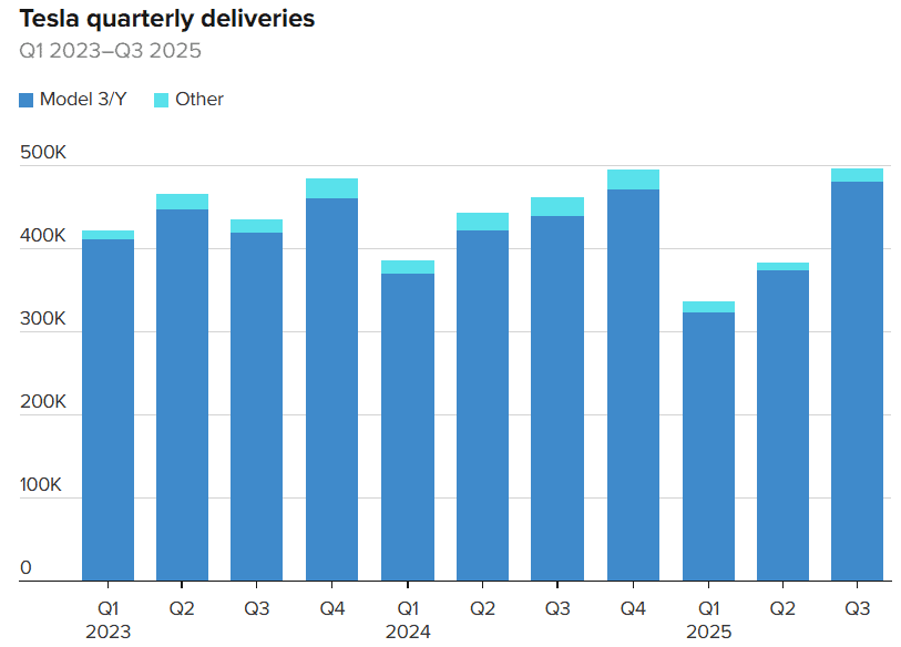 Prodeje v USA vzrostly o 7,5 % a celkové prodeje pak o 7,4 % oproti třetímu kvartálu v minulém roce. Celkem tak Tesla dodala během třetího čtvrtletí 497 099 vozidel.