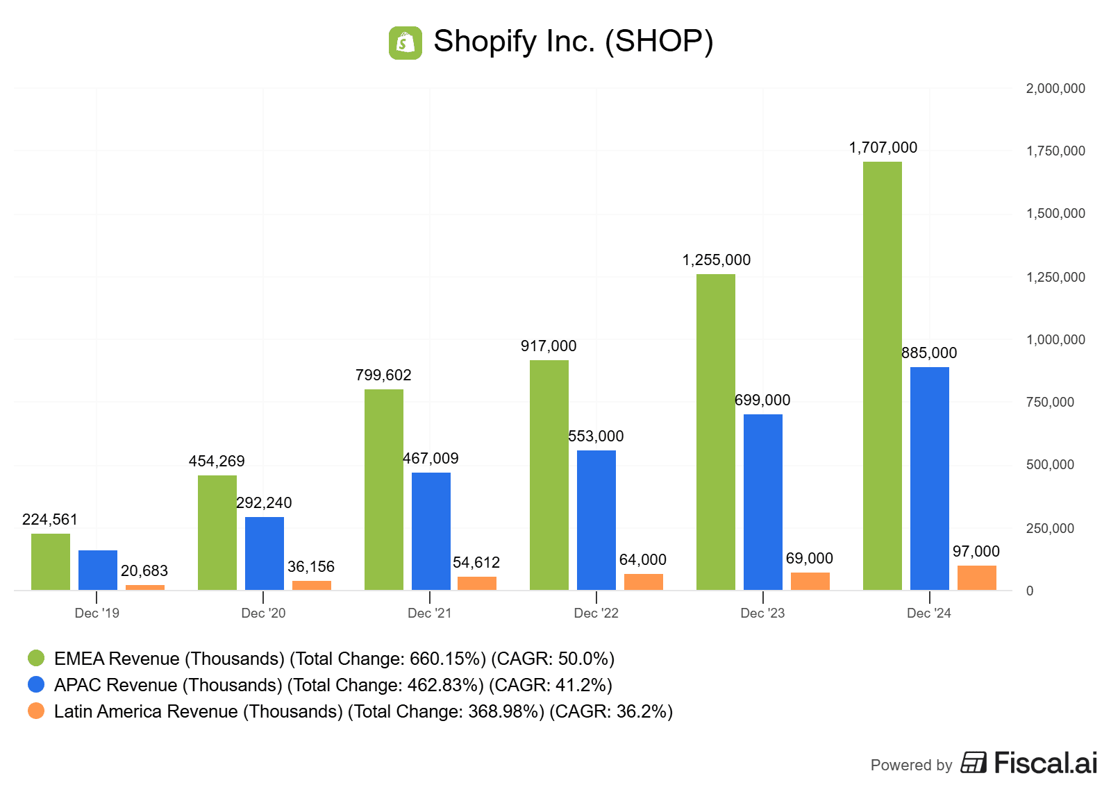 V současnosti jsou největším potenciálem pro Shopify mezinárodní trhy mimo Severní Ameriku. Na nich je firma také úspěšná a ukazuje, že je schopna získat tržní podíl i mimo svůj klíčový trh.
