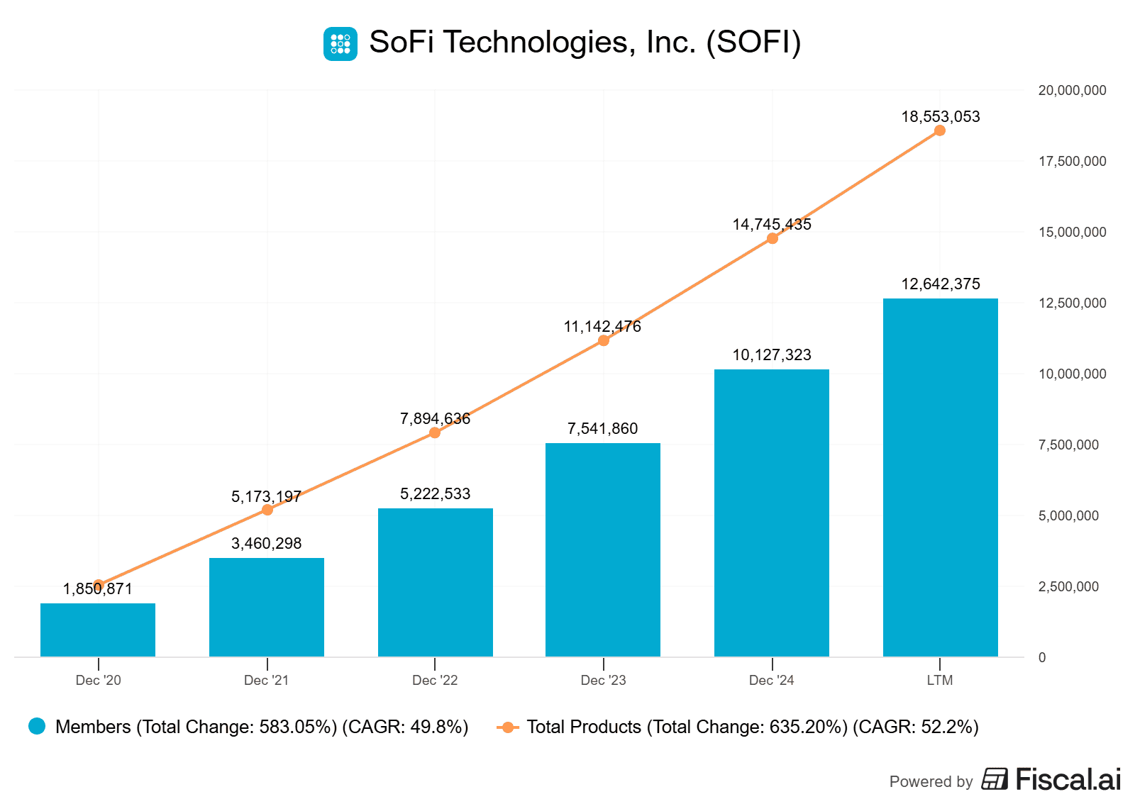 Meziročně tyto metriky rostly o 35 %. SoFi postupně diverzifikuje svůj business od půjček ke službám založených na poplatcích.