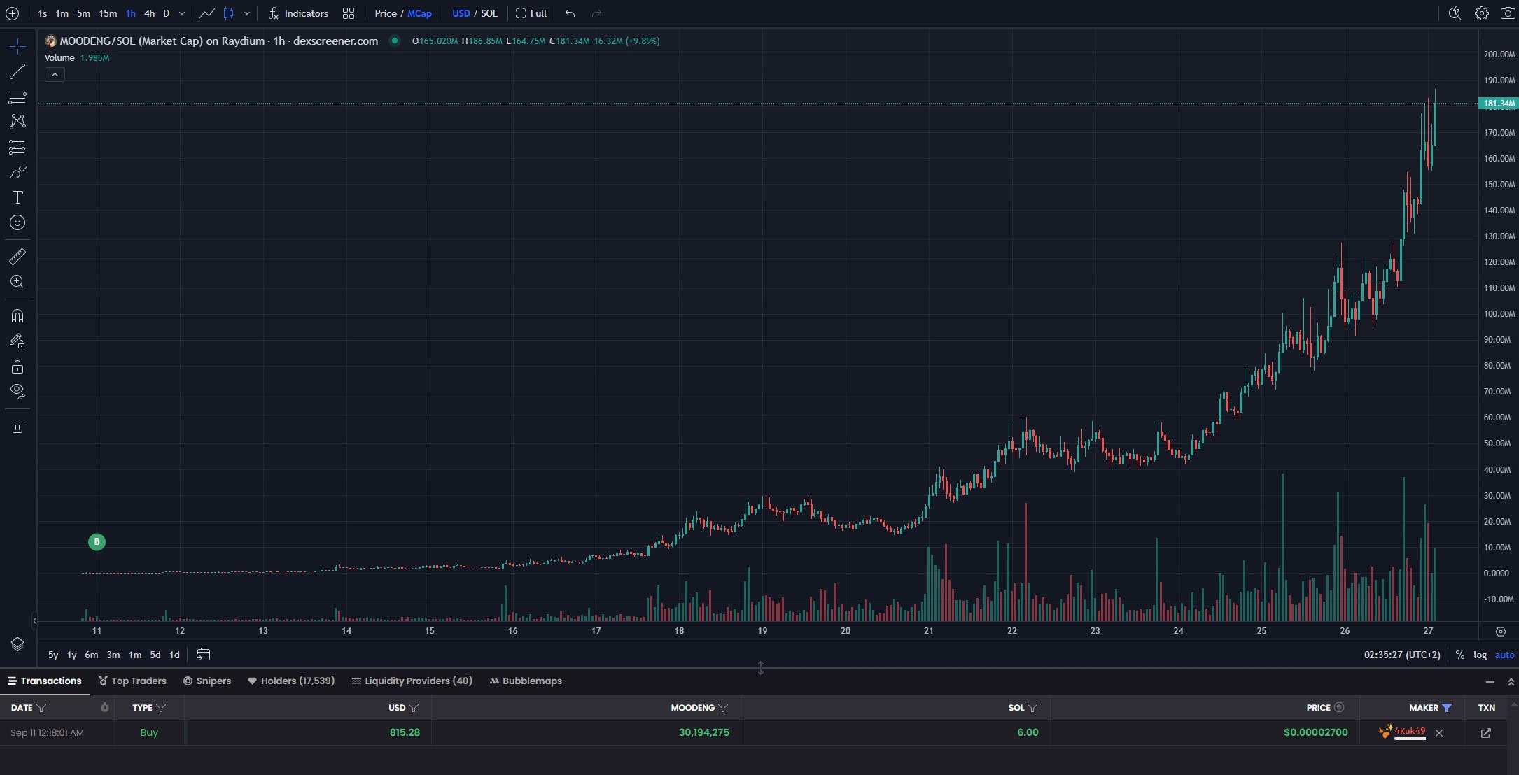 Napadlo ho totiž, že si za 815 USD koupí jen 4 hodiny starý memetoken s názvem Moo Deng (MOODENG). Díky tomu, že nákup přišel až 4 hodiny po spuštění tokenu, víme, že se nejednalo o žádného bota ani insidera a obchodník měl stejnou šanci na nákup tokenu jako všichni ostatní obyčejní obchodníci.
