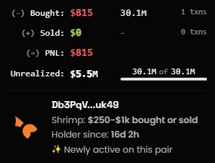 Nikdo však neměl tak pevné ruce a smysl pro hodlování jako právě “Db3P”. Ten nakoupil 30,2 milionu tokenů v době, kdy měl MOODENG tržní kapitalizaci pouze 100 000 USD a drží dodnes, kdy je valuace tokenu 180 milionů USD, tedy 1 800x výše.