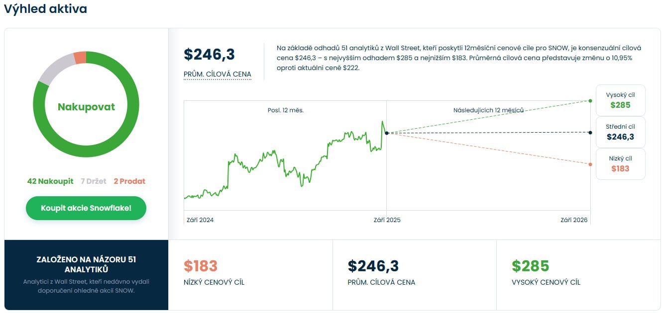 Cenová predikce pro akcie Snowflake od analytiků z Wall Street