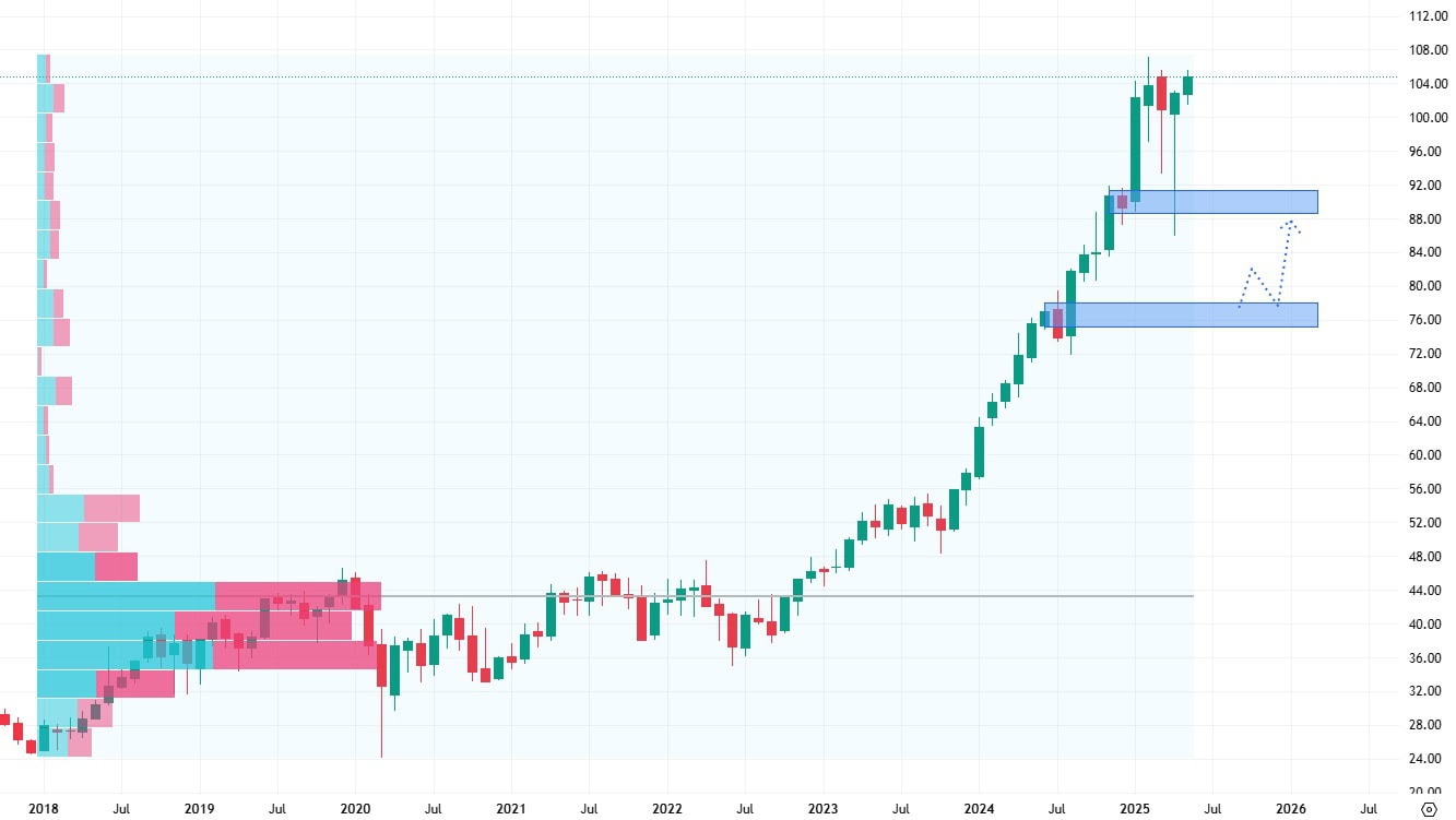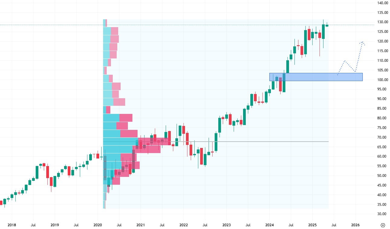 Pokud by tato situace nastala, tak nejbližší suport se nachází na ceně 100 USD za akcii a jedná se právě u jednu z posledních cenových korekcí.
