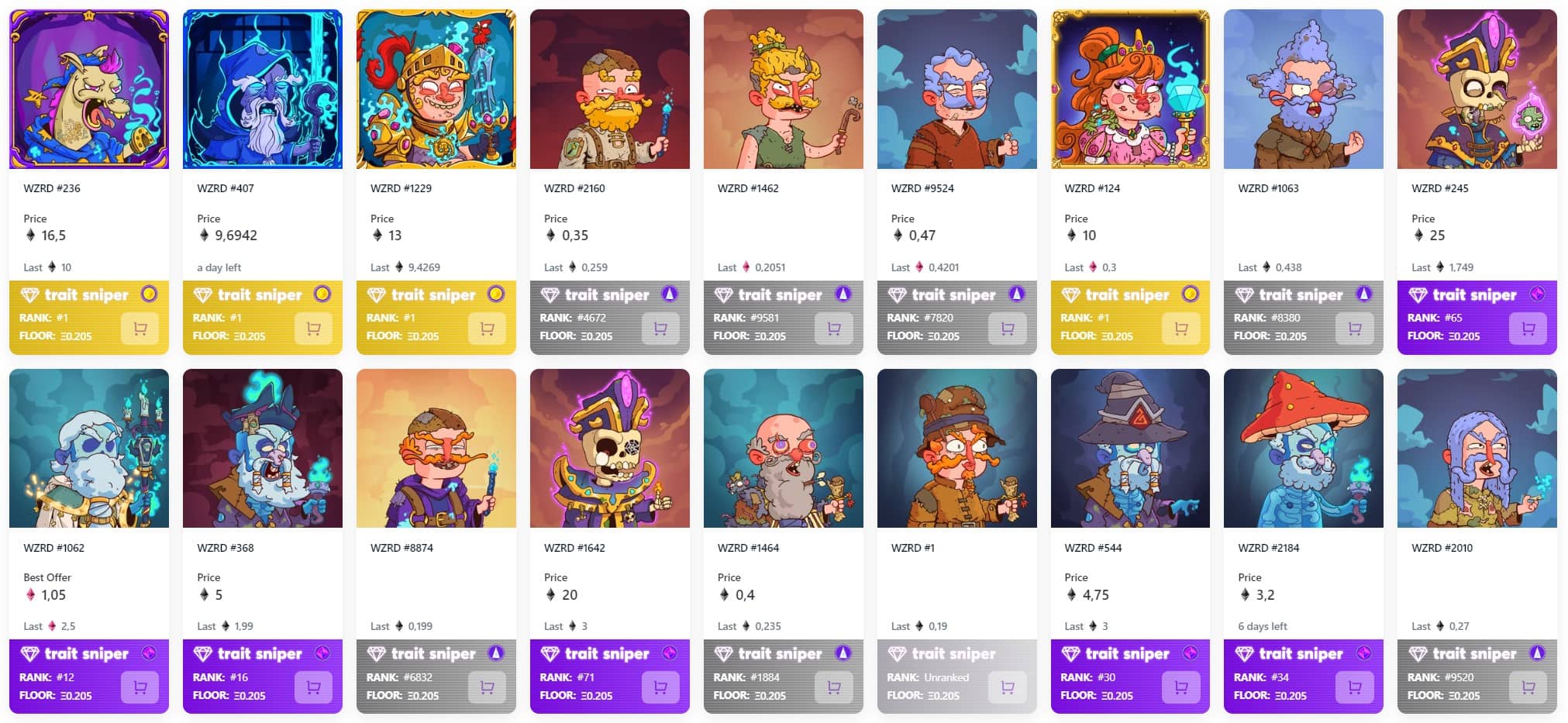 A právě k tomu slouží nepřeberné množství nástrojů, které automaticky zanalyzují celkový výskyt daného atributu v kolekci, vypočítají jeho vzácnost a podle toho přiřadí konkrétnímu nezaměnitelnému tokenu skóre, jehož výše určí jeho pořadí mezi ostatními. Nejpoužívanější nástroje pro NFT na Ethereu jsou webová stránka Rarity.tools a rozšíření do prohlížeče Trait.sniper, na Solaně pak servery HowRare.is a MoonRank.app, jejichž hodnocení využívá i tržiště MagicEden.