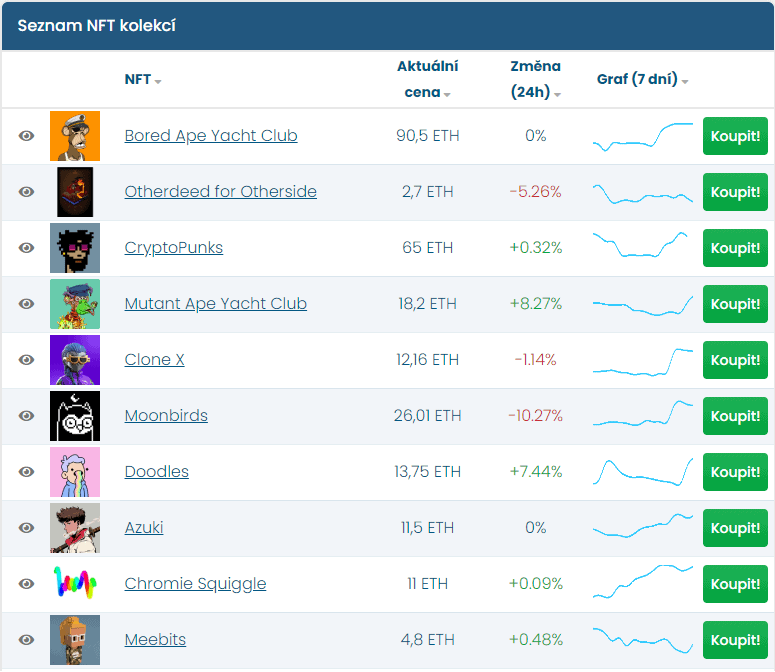 Finex.cz nabízí kromě grafů i kompletní recenze jednotlivých NFT kolekcí