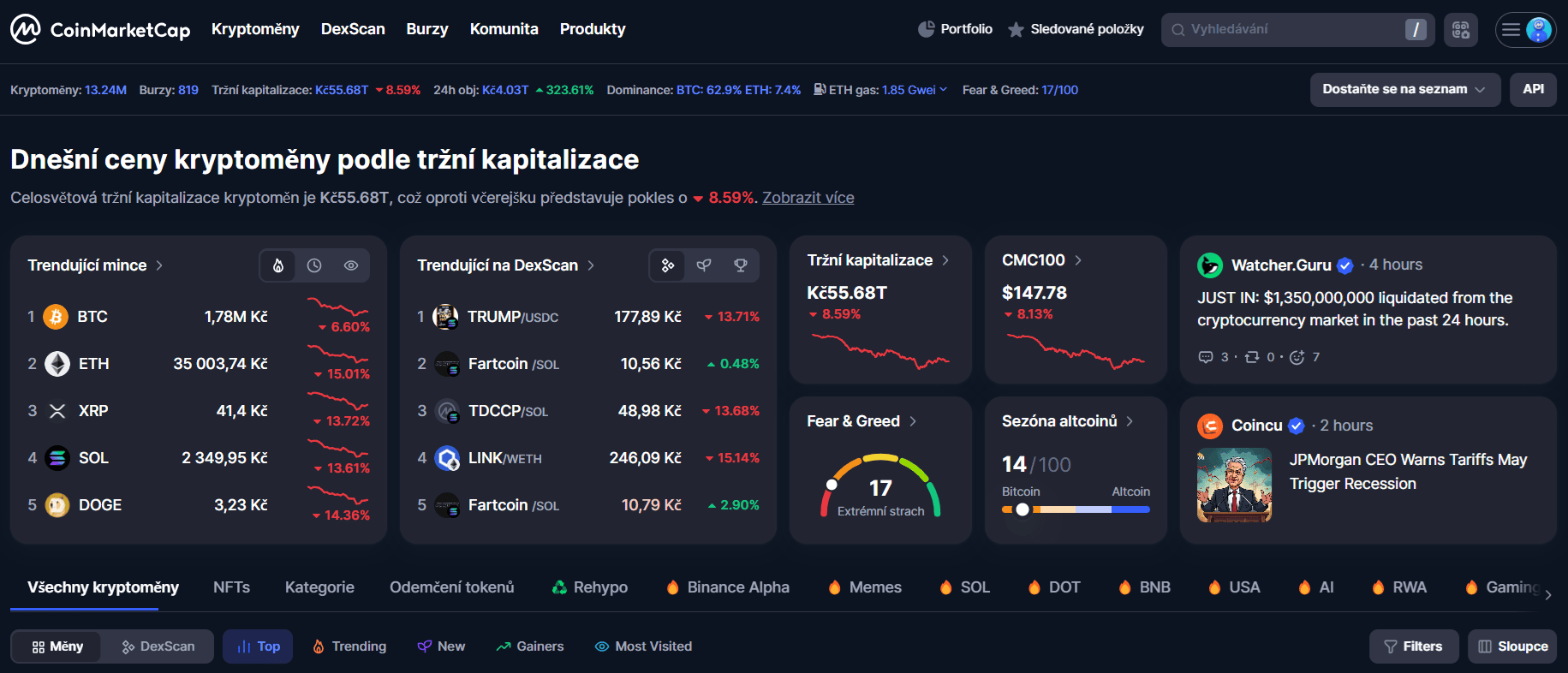 Pokud se pohybujete v kryptoměnovém světě delší dobu, určitě jste zaregistrovali portál coinmarketcap.com, který poskytuje live ceny, tržní data a analytiku pro tisíce kryptoměn.