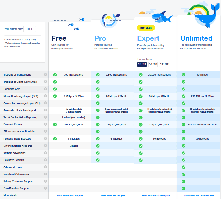 Profesionální obchodníci používají Cointracking především kvůli silným analytickým funkcím, kde můžete porovnávat realizované/nerealizované zisky a ztráty, průměrnou nákupní cenu aktiva, poplatky za obchody nebo analýzu trendů.