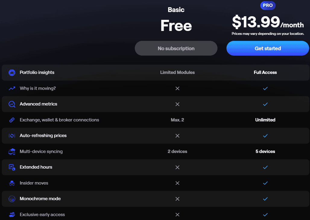Neomezený počet kryptoměn a Live ceny jsou omezeny pouze na placenou verzi