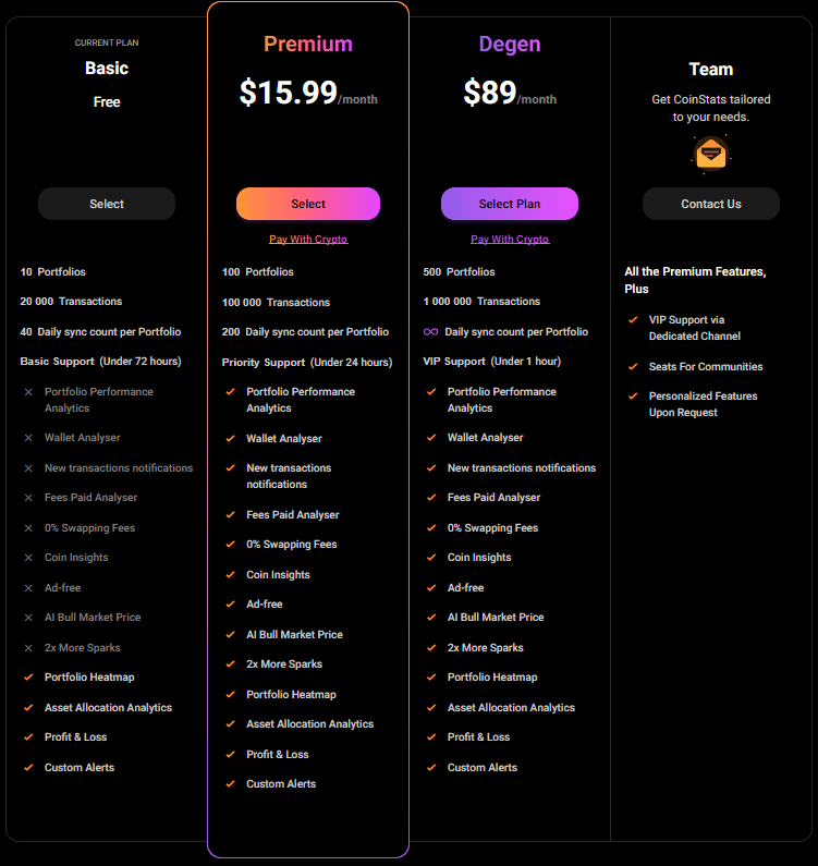 Výhodou je neustále rostoucí výběr sledovaných kryptoměn, kterých už je přes 20 000. Kromě kryptoměn lze prostřednictvím Coin Stats také sledovat více než 300 kryptoměnových burz.