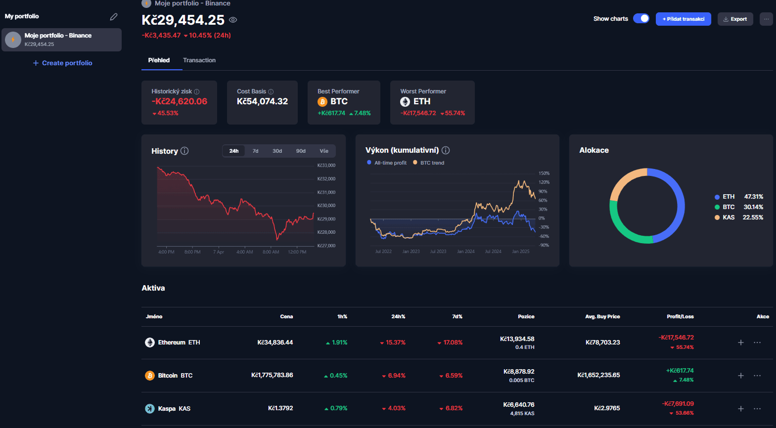 Sledovat můžete nejen kryptoměnové portfolio, ale také akcie, ETF nebo drahé kovy