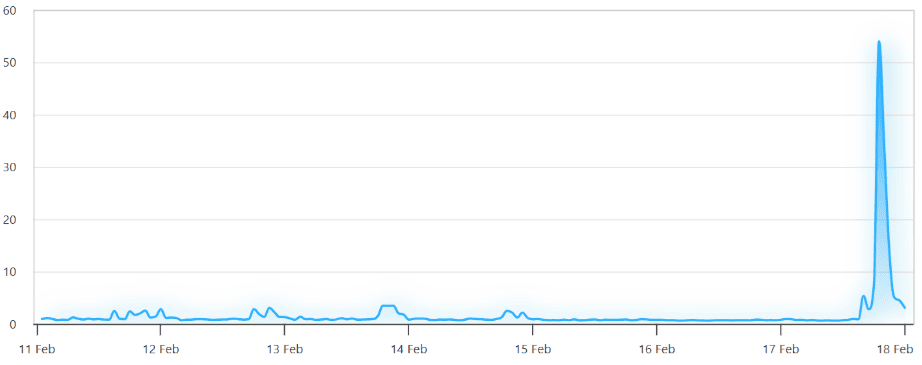 Nárůst byl způsobený transakčními poplatky na síti, které v jednu chvíli extrémně vystřelily. Poplatky vzrostly z 0,7 dolaru na 70 dolarů (9 900%) v důsledku spuštění nového meme coinu, který způsobil zvýšenou aktivitu na blockchainu.