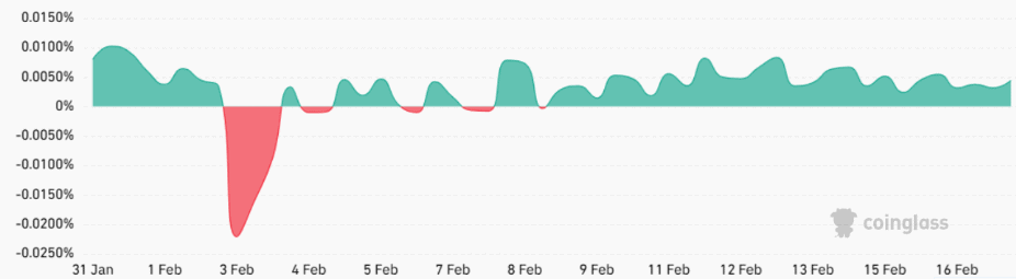 Míra financování perpetual futures, vyrovnávající nerovnováhu pákového efektu na derivátových burzách, také zůstala stabilní.