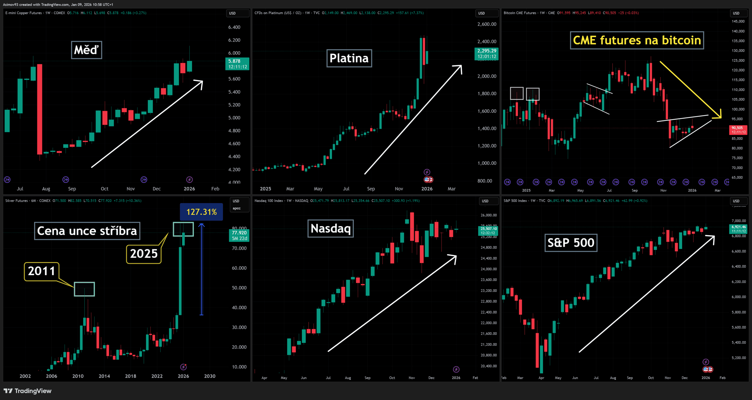 A jako extrémní příklad lze uvést stříbro, které si za půl roku připsalo čistě zhruba 95 %. To jen podtrhuje, že se část trhu a část “reálné ekonomiky” začala cenově probouzet i mimo nejznámější akciové příběhy.