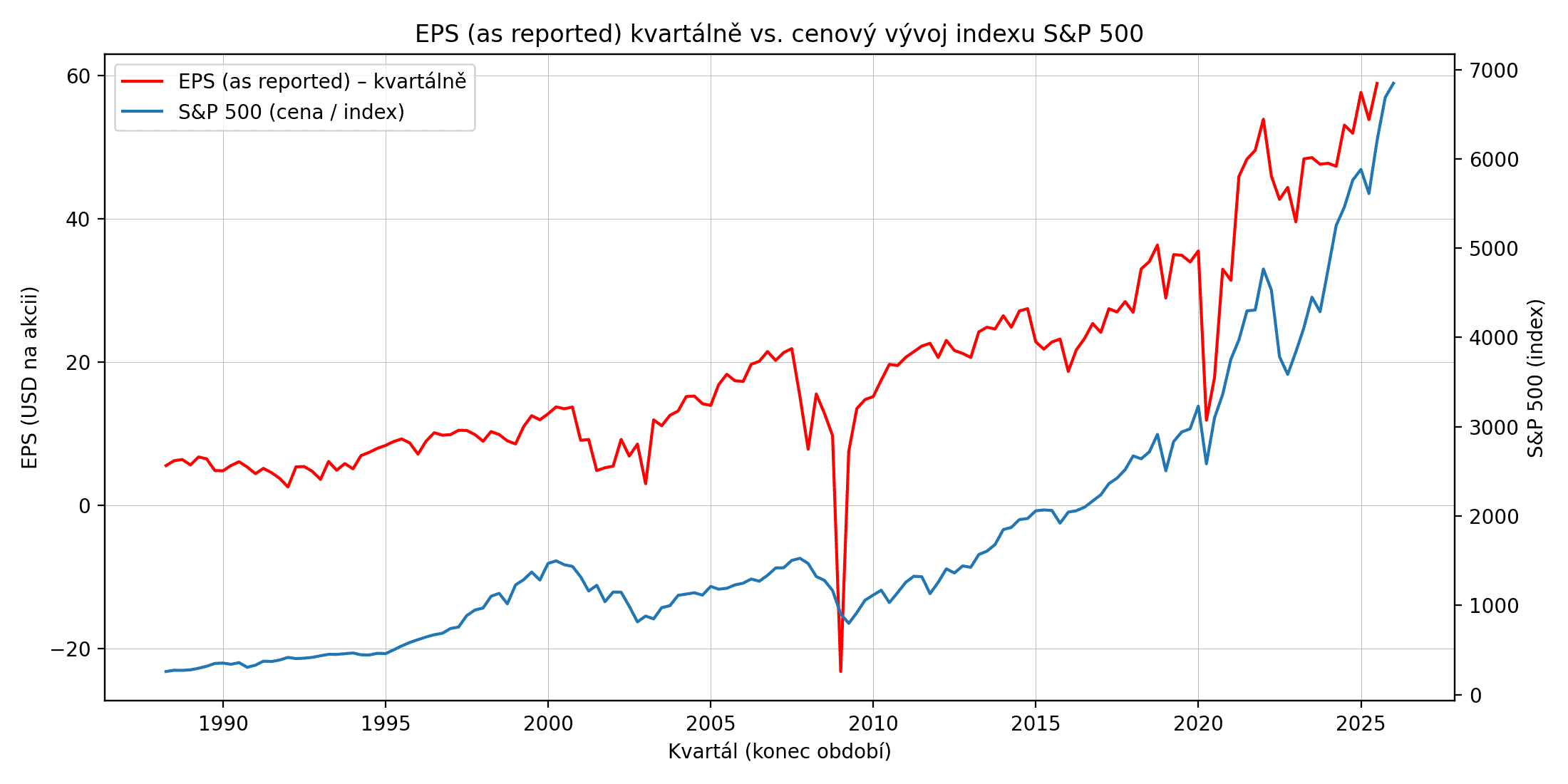 Cenový vývoj akciového indexu S&P 500 kopíruje růst EPS