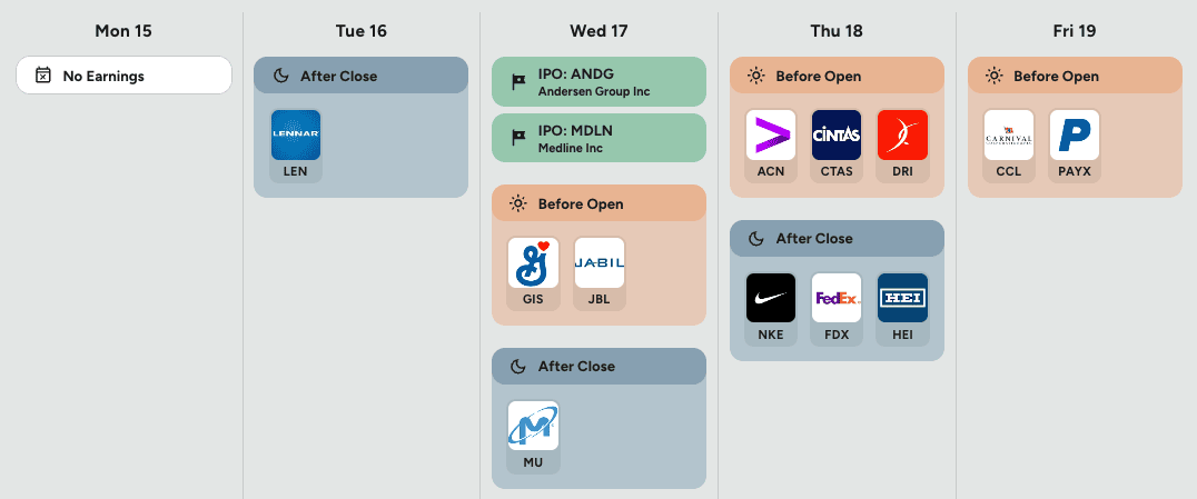 A do toho výsledková sezona v mini verzi: Micron reportuje ve středu po závěru obchodování, ve čtvrtek ráno Accenture, a po zavření burzy Nike i FedEx.