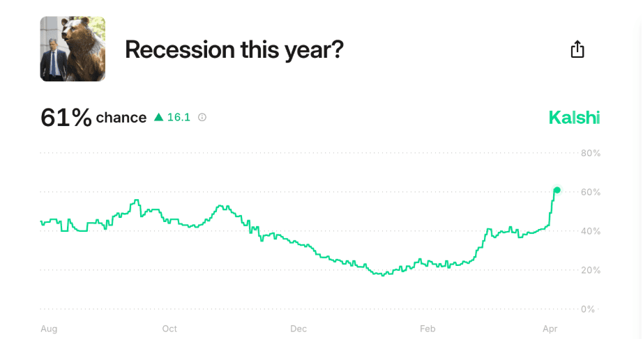 Nejvíce se však experti obávají americké ekonomiky. Banka Goldman Sachs dříve přisuzovala 35% pravděpodobnost recese v USA, ale sázkové trhy na Kalshi tuto pravděpodobnost po oznámení cel zvýšily na více než 60 %.