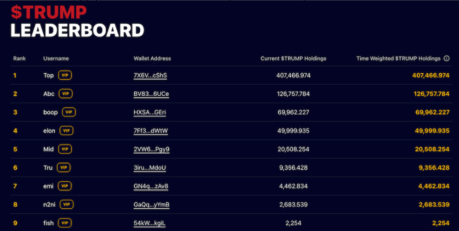 A pro největších 25 držitelů tokenu $TRUMP je dokonce před večeří uspořádána recepce se současným prezidentem USA. Jako bonus dostanou tito účastníci speciální VIP tour.