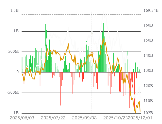 Z ETF fronty přišla v listopadu studená sprcha v podobě čistého odtoku kolem 4,3 miliardy dolarů ze spotových bitcoinových fondů. Začátkem prosince se ale situace mírně obrátila a objevily se první čisté přílivy kolem 50 milionů USD.