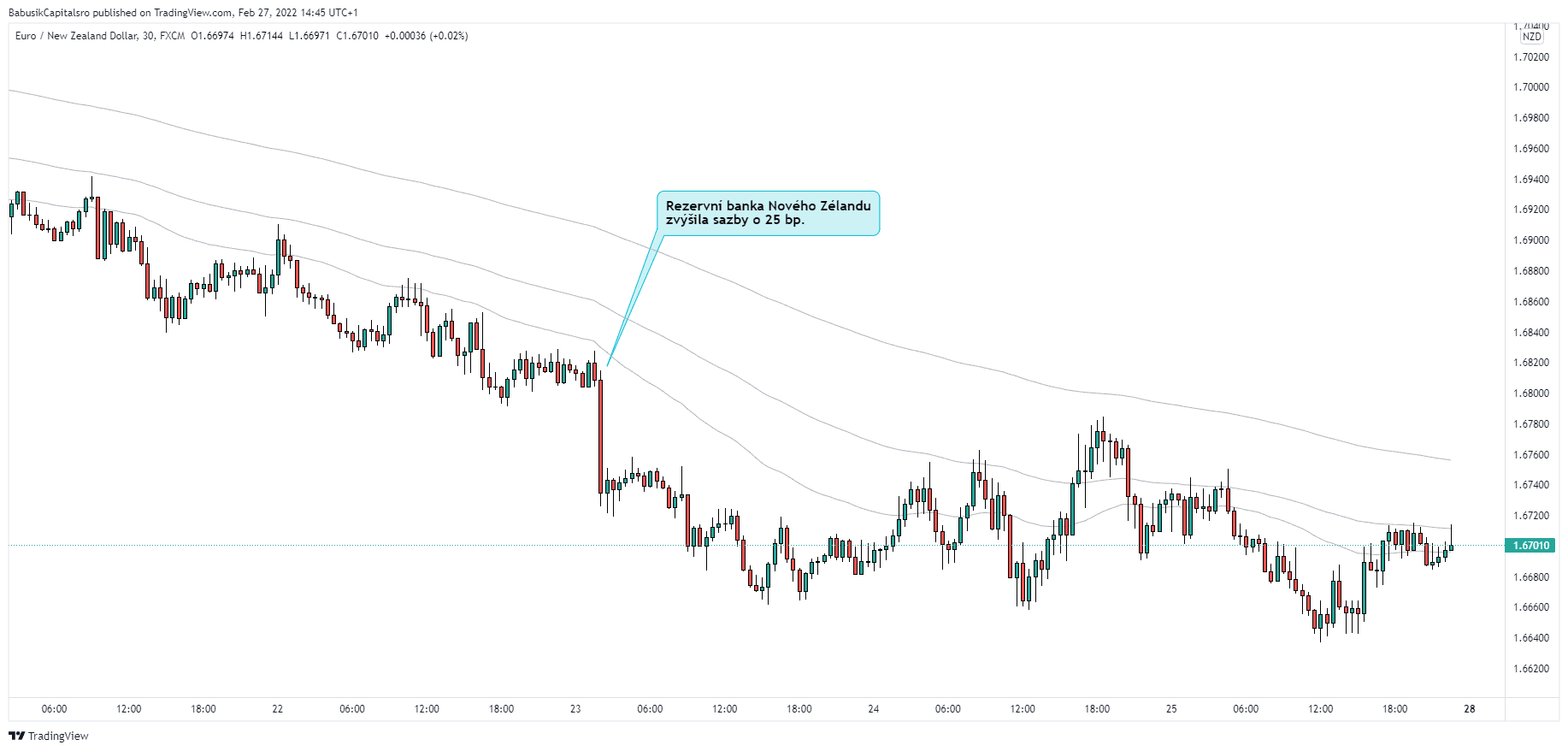 Rezervní banka Nového Zélandu (RBNZ) potřetí v řadě zvýšila svou hotovostní sazbu o 25 bazických bodů (aktuální sazba: 1 %, předchozí: 0,75 %) tak, jak se také očekávalo. K posílení novozélandského dolaru také jistě pomohl více jestřábí komentář, který byl překvapením.