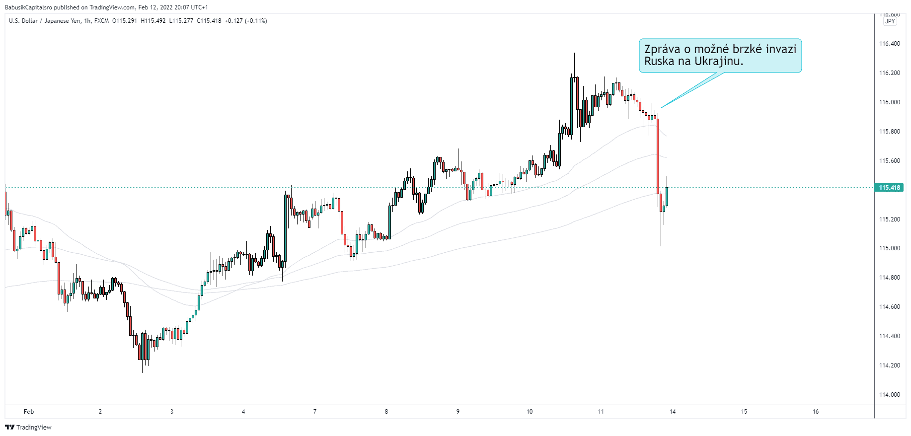 Pořádný růst však zažil v pátek japonský jen, který reagoval na tiskovou konferenci Bílého domu. USA věří, že Putin se rozhodl napadnout Ukrajinu a oznámil tyto plány ruské armádě.