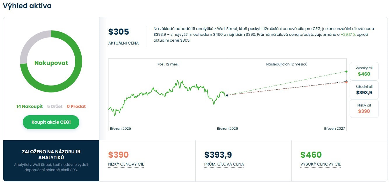 Cenová predikce pro akcie Constellation Energy od analytiků z Wall Street