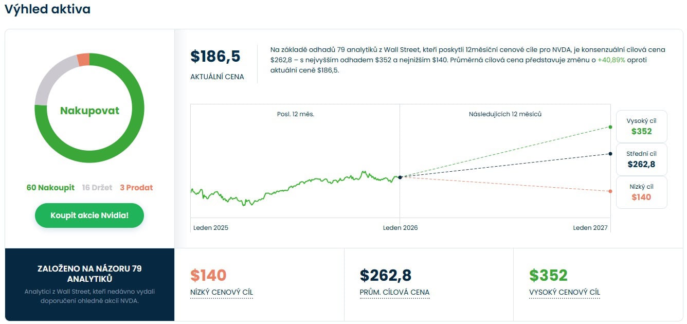 Cenová predikce pro akcie Nvidia od analytiků z Wall Street