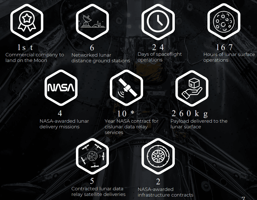 Jejich přistávací modul Athena dosáhl Měsíce, ale po převrácení na bok se nedokázal dobít. Původně tam toto zařízení mělo operovat až 10 dní.