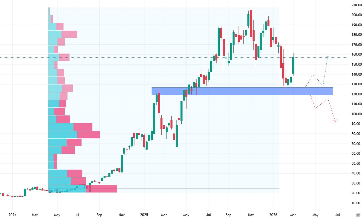 Akcie Palantiru čerstvě otestovaly svůj nejbližší support na ceně 120 dolarů, od kterého se odrazily a rostou. Z pohledu rezistencí na vyšších hodnotách neleží nic zásadního, takže tyto akcie mají otevřenou cestu k dalšímu růstu.
