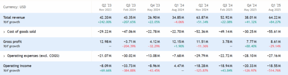 Firma ale stále vykázala čistou ztrátu 27,8 milionu USD, což při přepočtu na akcii znamená záporné EPS -0,07 USD. Po očištění o některé jednorázové položky ale byla ztráta nižší.