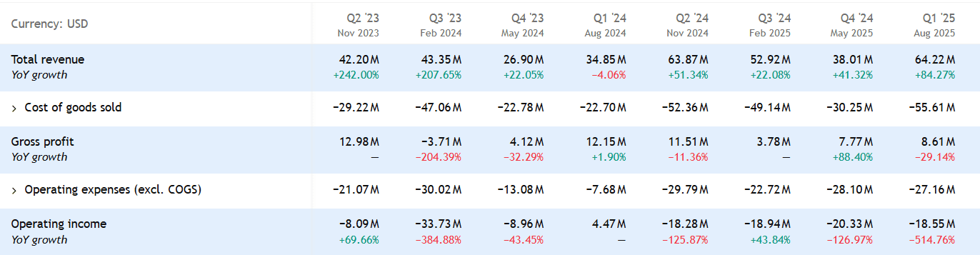 V prvním čtvrtletí fiskálního roku 2026 (končící 31. května 2026) Applied Digital vykázala silný růst tržeb na 64,2 milionu USD, což představuje nárůst o 84 % meziročně.