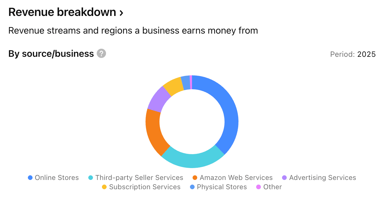 Celkový provozní zisk vzrostl na 25 miliard dolarů. Takto pestrý byznys model znamená, že Amazon dokáže financovat nákladný investiční cyklus do umělé inteligence zcela sám.