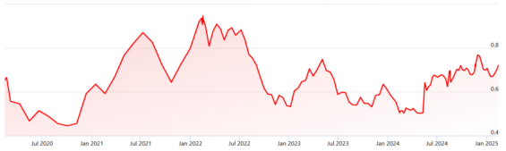 Její poměr ceny k účetní hodnotě (P/B) je 1,2 oproti průměru 1,6 u srovnatelných společností a poměr ceny k tržbám (P/S) je 0,7 oproti průměru 1,2 u srovnatelných společností.