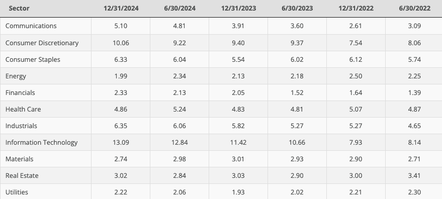 Dvouciferných čísel ke konci roku 2024 dosahoval už pouze sektor cyklického spotřebního zboží.