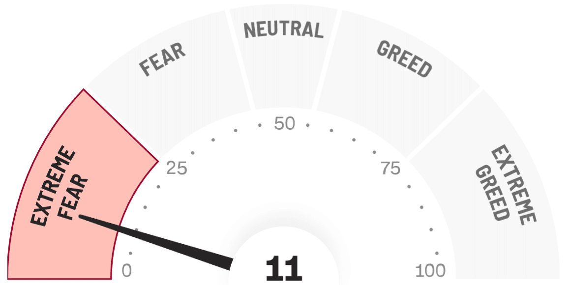 Nervozitu dobře vystihuje Fear and Greed Index (index strachu a chamtivosti) webu CNN, který se nyní propadl do zóny “extrémního strachu”, poblíž hodnoty 10 bodů ze sta.