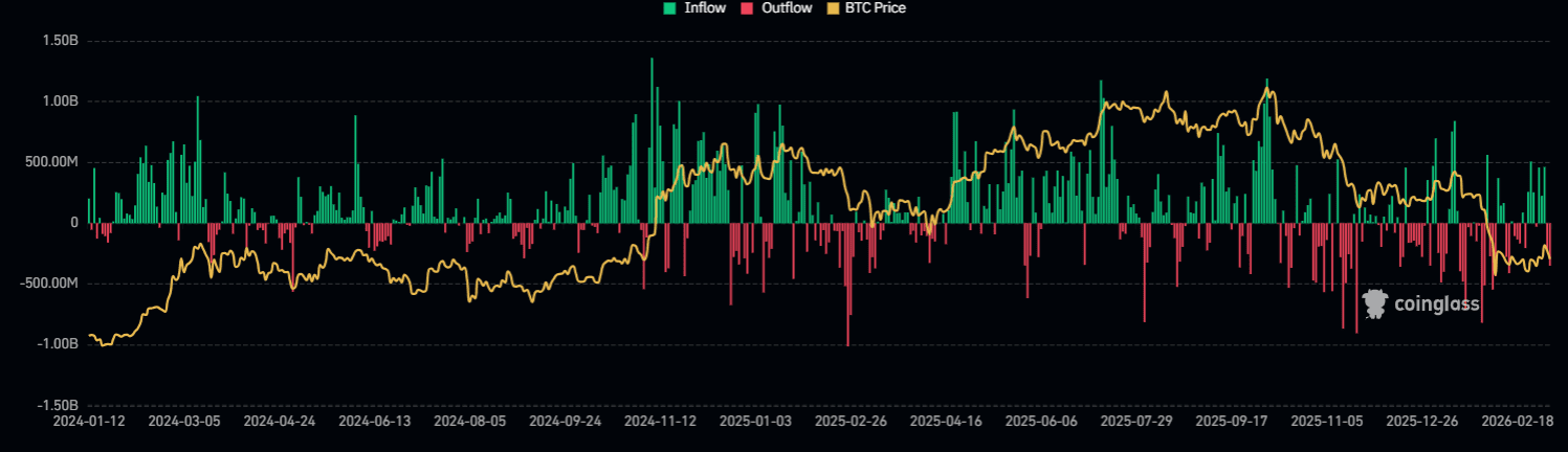 Ještě před tím ale fondy založené na ETH čelily silnému tlaku. Během pěti týdnů investoři vybrali více než 1,38 miliardy dolarů. Největší týdenní odliv přišel v týdnu končícím 23. ledna, kdy fondy ztratily asi 611 milionů dolarů.
