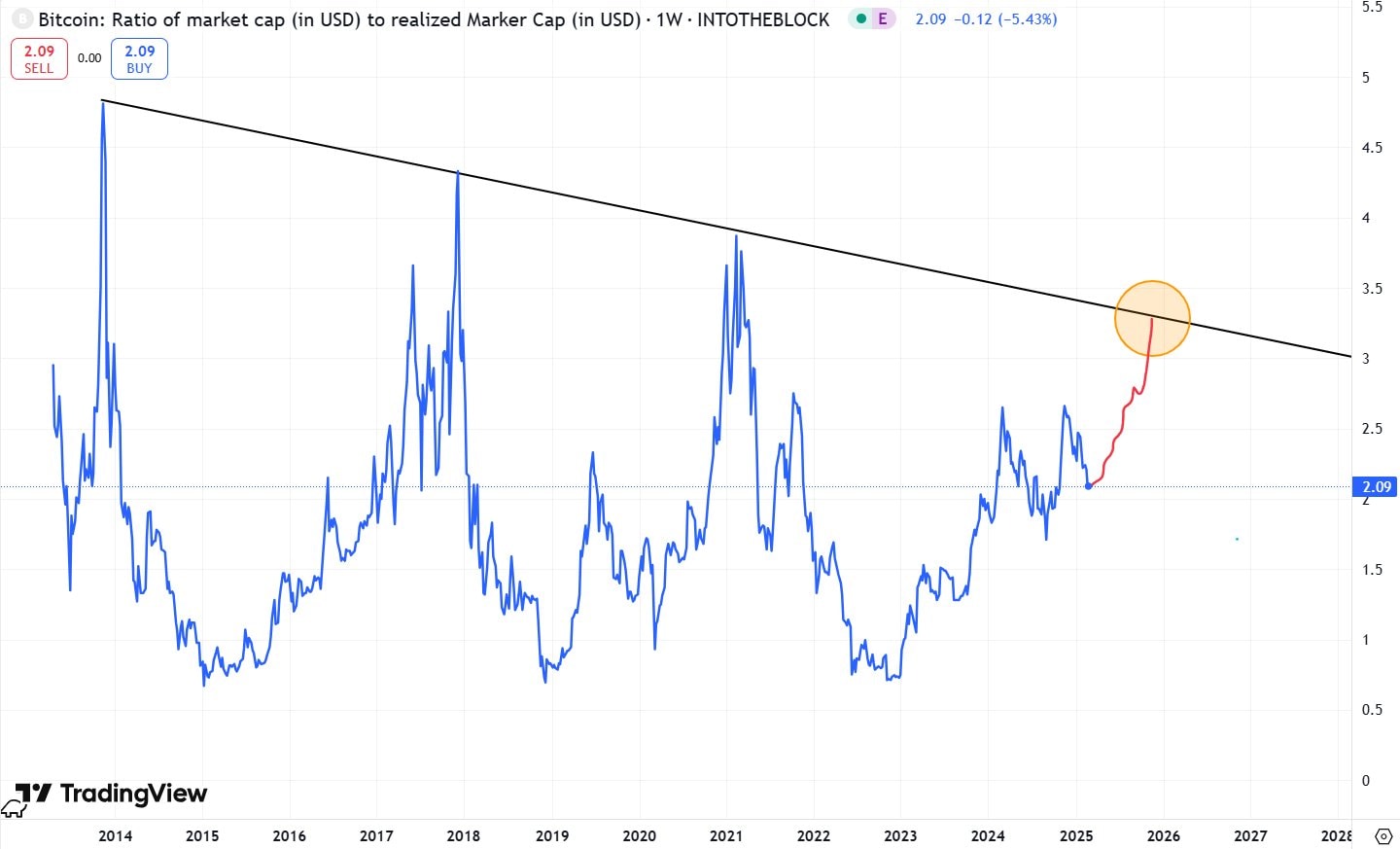 Chapo predikuje, že v rámci tohoto cyklu dosáhne poměr MVRV 3.2, což by znamenalo další růst Bitcoinu na nová maxima ještě v tomto roce.