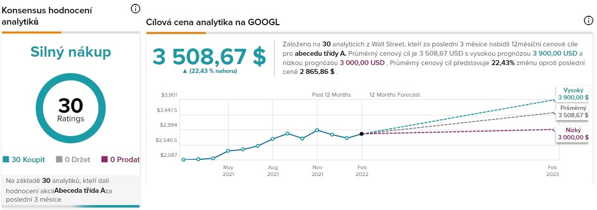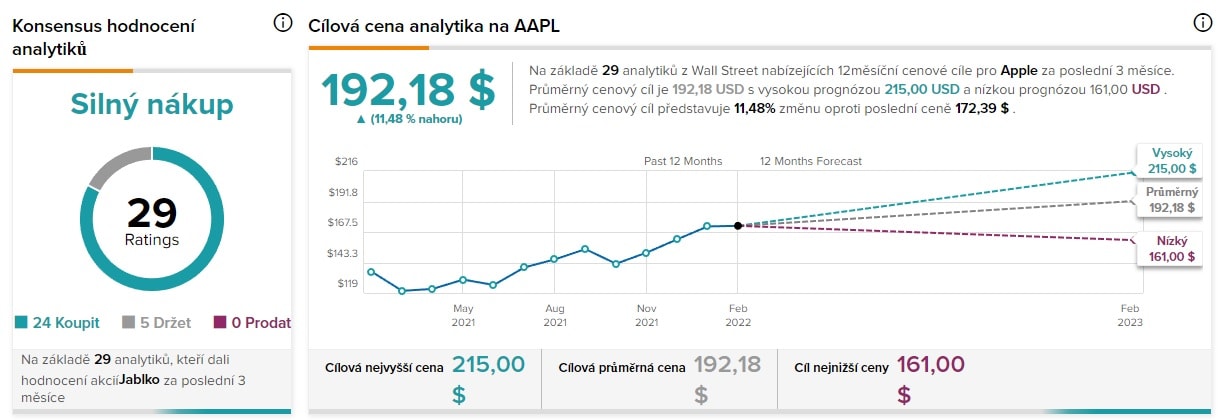 Akciový graf společnosti velmi dobře zareagoval na novoroční propad, který byl již téměř vymazán, a akcie se obchodují opět na svých maximech. Tato vizionářská společnost vidí část své investiční budoucnosti v podpoře projektů zaměřených na rozšířenou realitu, do kterých hodlá investovat. I přes slabší poslední kvartál, jsou společnosti Apple predikovány vysoké cíle pro rok 2022. První z nich je dosažení čtvrtletního zisku ve výši 124 miliard USD. Pokud společnost tohoto cíle dosáhne, jistě potěší nejednoho akcionáře.