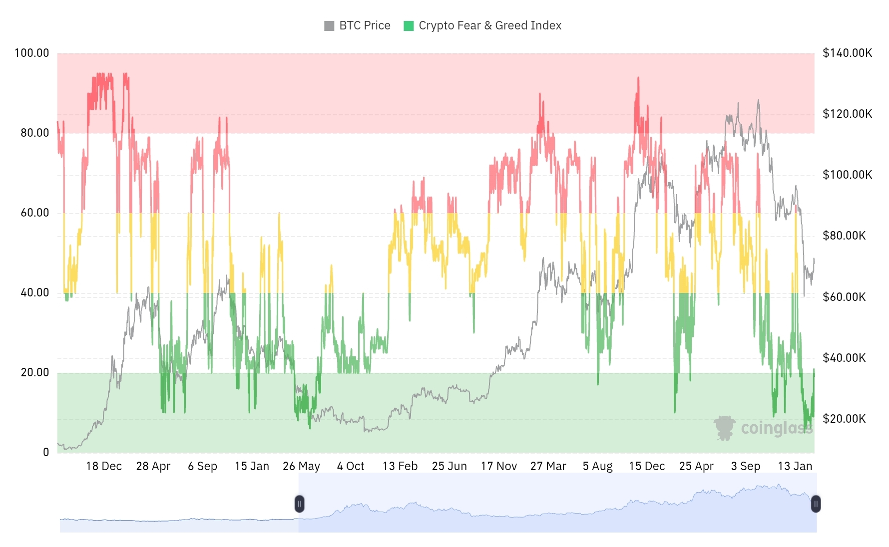 Naopak kryptoměnový trh se dostal do oblasti extrémního strachu. Takové rozdíly v sentimentu mohou někdy signalizovat potenciální změnu trendu.