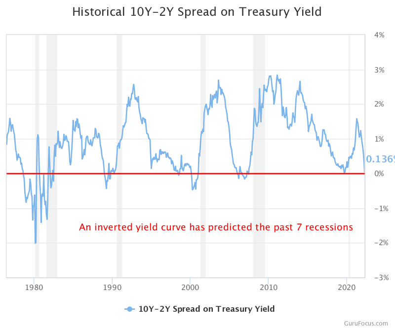 Je proto recese 100%? Ne, trh s federálními dluhopisy si to pouze myslí. Může se mýlit? Určitě ano. Navíc nesmíme ignorovat fakt, že aktuální podoba výnosové křivky není zcela převrácená, ale “jen” částečně.