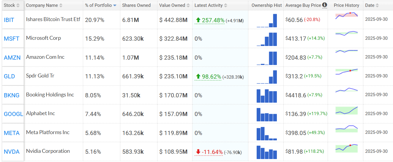 Harvard odhalil, že ve třetím kvartálu navýšil svou sázku na Bitcoin, který nyní tvoří až 20 % akciového portfolia.