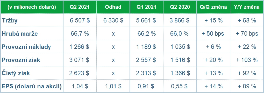 Souhrn výsledků hospodaření společnosti Nvidia za 2. čtvrtletí 2021