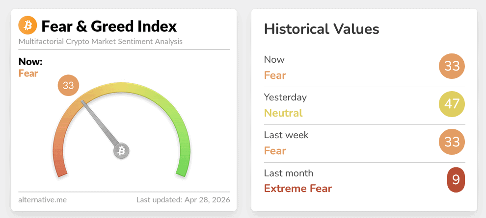 Crypto Fear & Greed Index v době psaní článku.