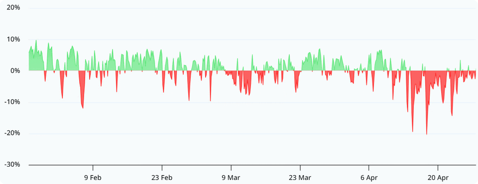 Roční míra financování u bitcoinových perpetual futures.