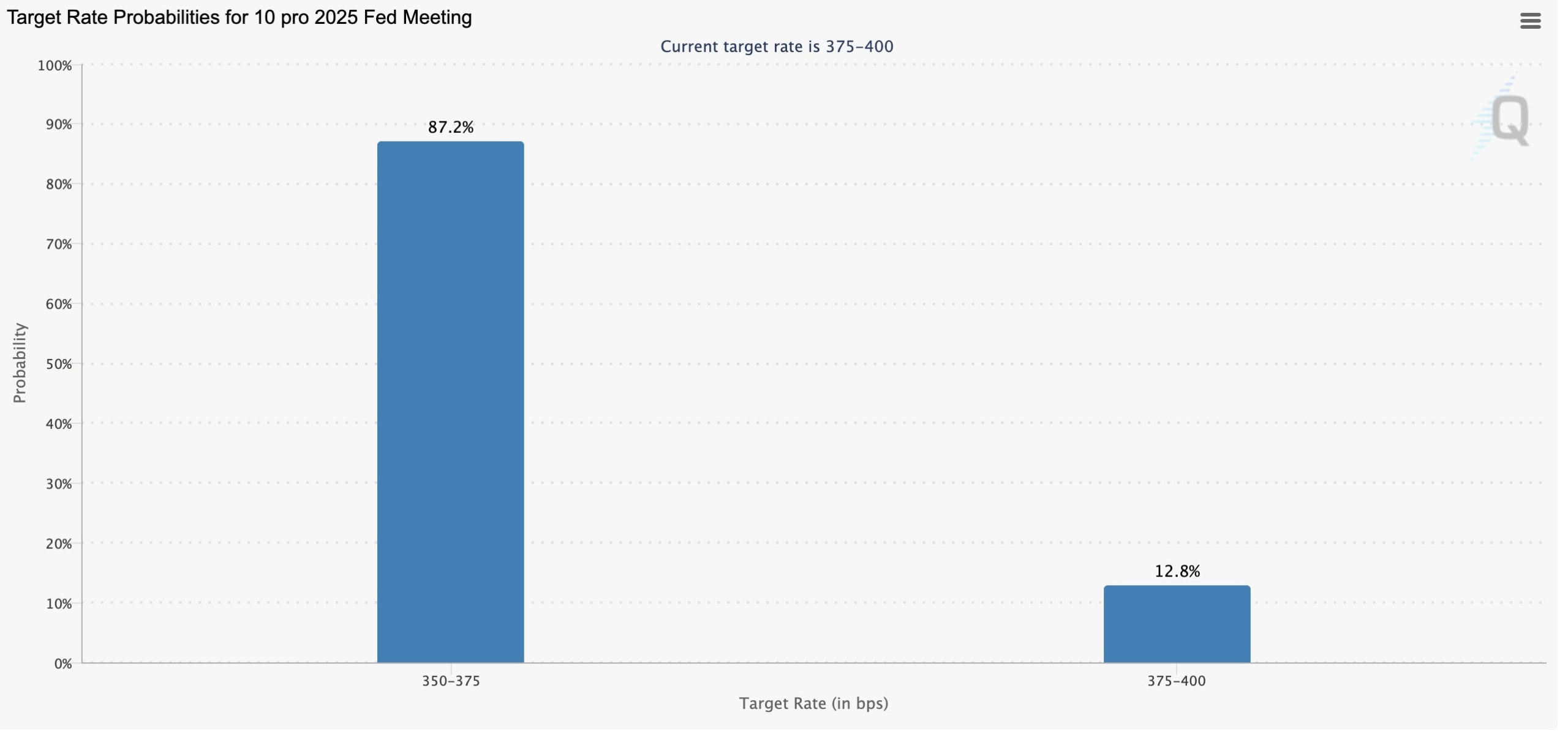 Trhy tuto šanci oceňují velmi vysoko. Podle burzy Polymarket je pravděpodobnost uvolnění měnové politiky na 93 %. Také data z CME FedWatch Tool ukazují vysokou pravděpodobnost, konkrétně 87 %.