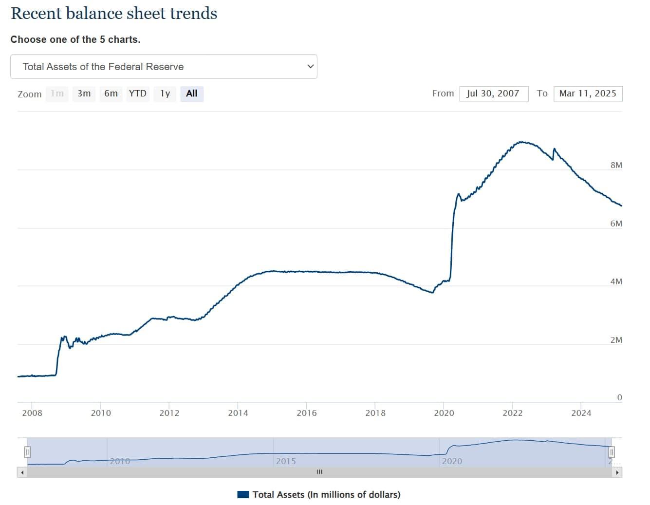 Na posledním zasedání FOMC oznámil Federální rezervní systém (Fed) zpomalování tempa kvantitativního utahování (QT). Od 1. dubna 2025 Fed sníží měsíční limit pro odprodej státních dluhopisů z dosavadních 25 miliard dolarů na 5 miliard dolarů.