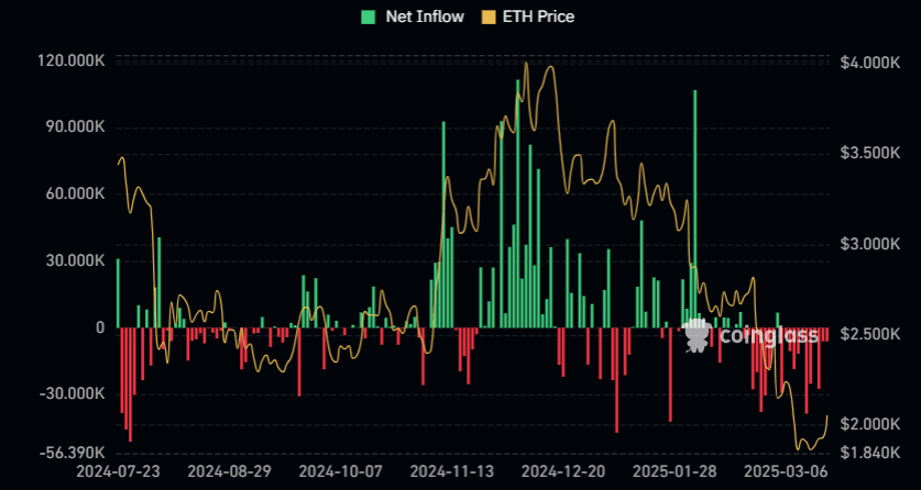 Vývoj peněžních toků v rámci Ethereum ETF